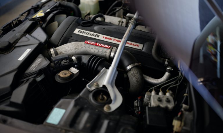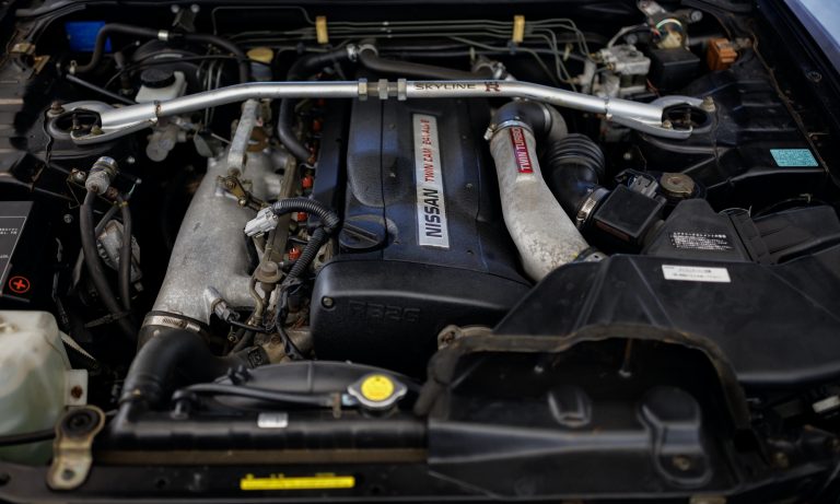 RB26DETT kódú motorja 2,6 literes, hathengeres és két turbófeltöltő hergeli hivatalosan 280 lóerőre. A Nissan azonban csak papíron tartotta be a japán gentleman's agreement-et, miszerint maximum 280 lóerős és 180 km/óra végsebességű autókkal fokozzák a közúti biztonságot még a sportautók esetében is.