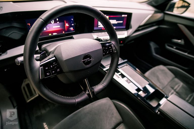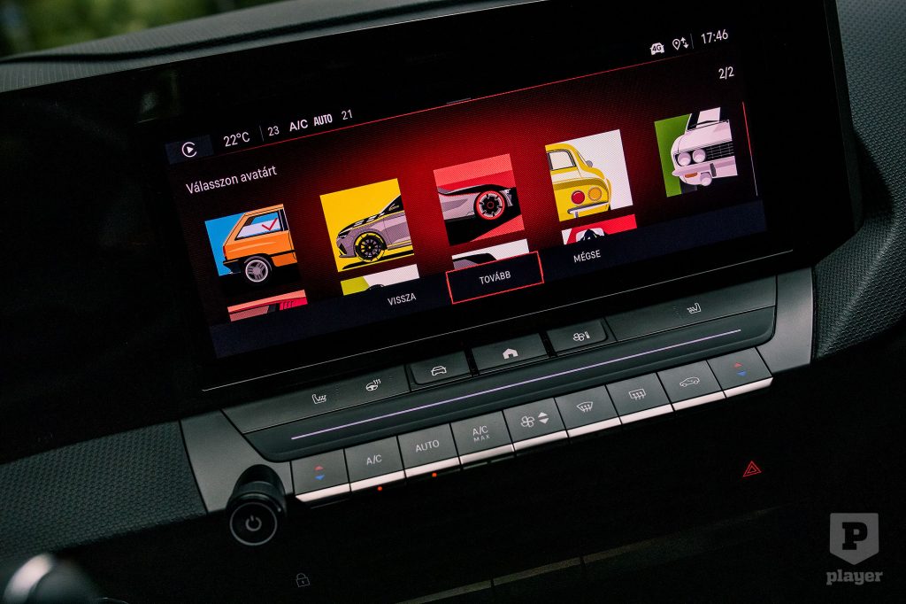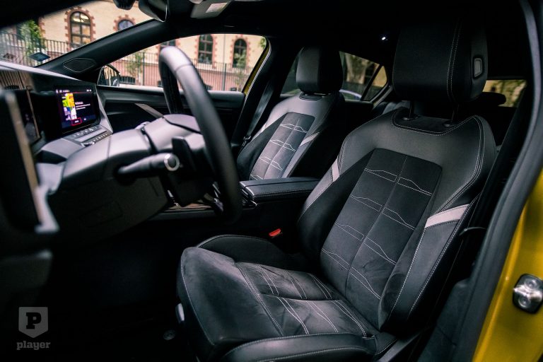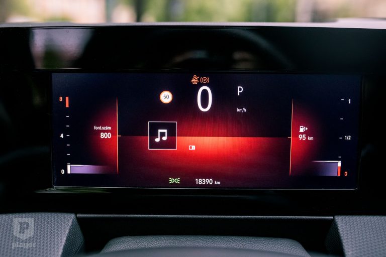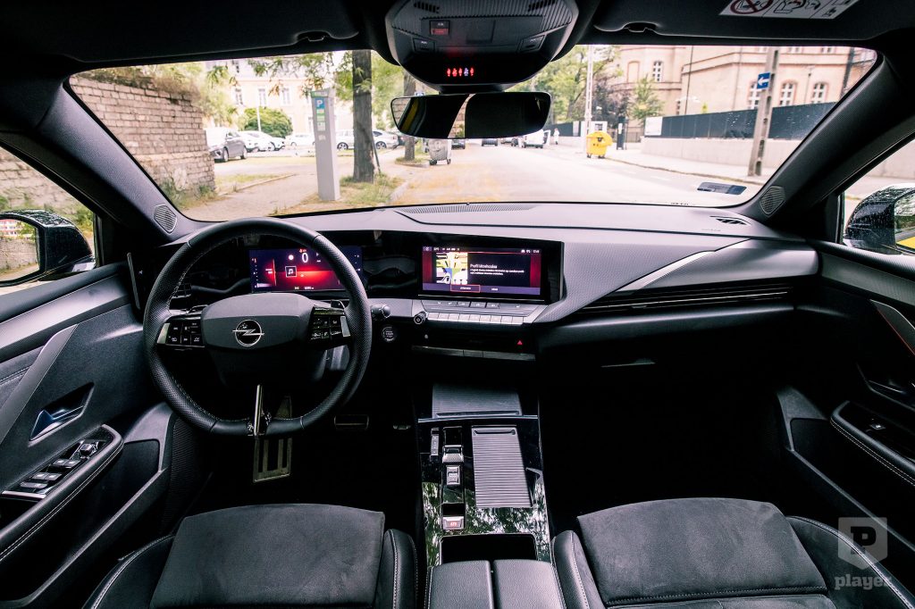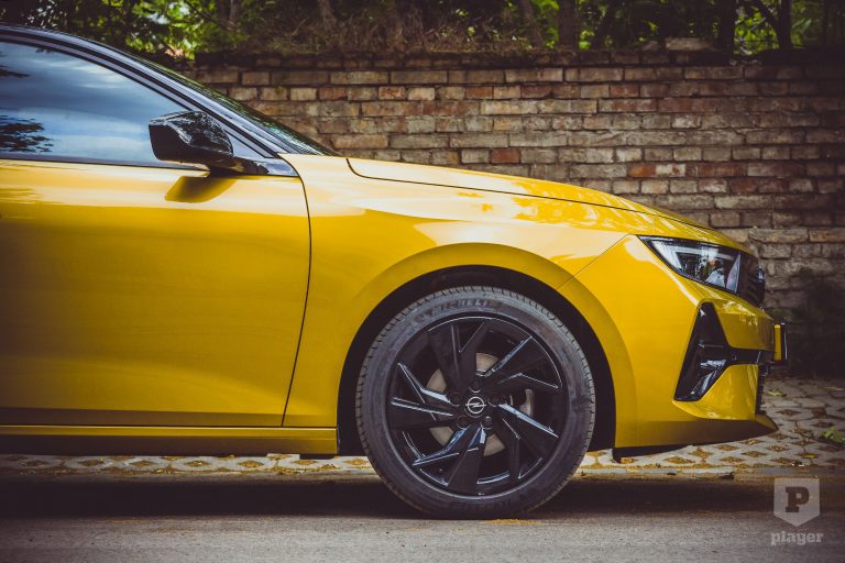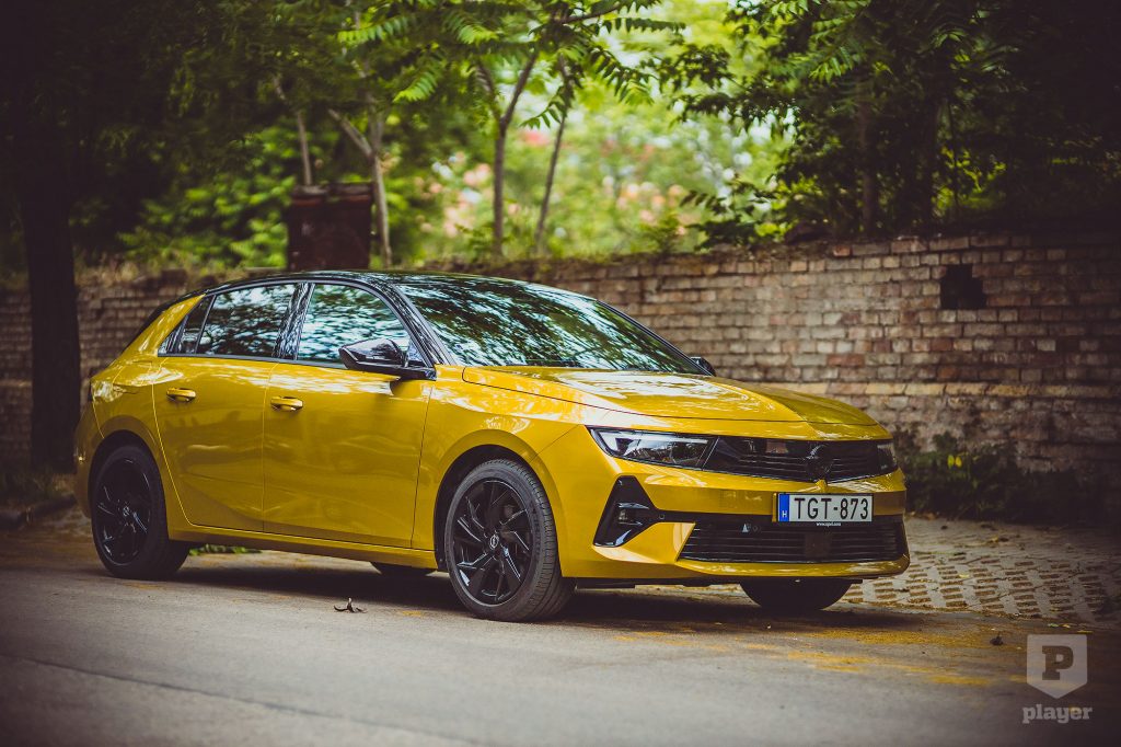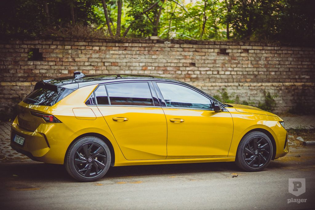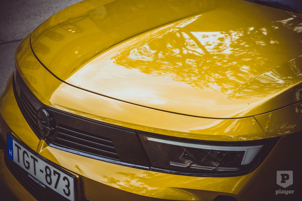 Szintén GS Line-jellemző a fekete tető, amely a Kult sárga fényezéssel igazán és jó értelemben feltűnővé teszi az Astrát – egyébként ez az egyetlen szín, amiért nem kell felárat fizetni, még a fehér is plusz 110 ezerbe kerül. Nagy szívességet tesz a PSA csoport a világnak, hogy új szokása szerint minden modellhez választ egy igazán jó árnyalatot (a Citroën C5 X-hez a Magnetic kéket, a Peugeot 308-ashoz a Olivine zöldet, a kombihoz a Coppery kéket stb.), amit alapáron kínál, a többiért – köztük az unalmas szürkékkel – viszont fizetni kell.