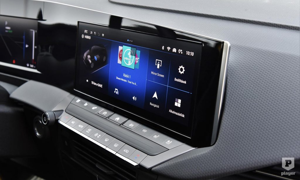Az érintőképernyőt amúgy sem helyezte túlságosan előtérbe az Opel. A tízcollos kijelző előtt két sorban az összes fontosabb klíma- és infotainment-funkciót el lehet érni odanézés nélkül is megtalálható fizikai gombokkal. A Volkswagen-csoporttal ellentétben az Opel a kormánygombokkal sem tolta túl a jövőt: nem érinteni, tapogatni, dörgölni kell ezeket, hanem rendesen megnyomni a tempomat, a kismenü vagy az audiorendszer kezeléséhez. A fotókon persze mindez nem olyan látványos, mint a Golf, Leon, Octavia sima, fényes kezelőfelületei, de a mindennapokban ez az, ami működik. És ami nem ujjlenyomatos folyton.