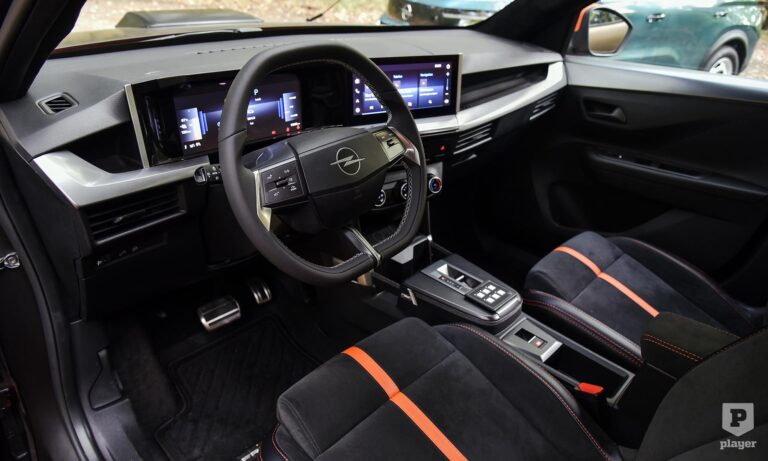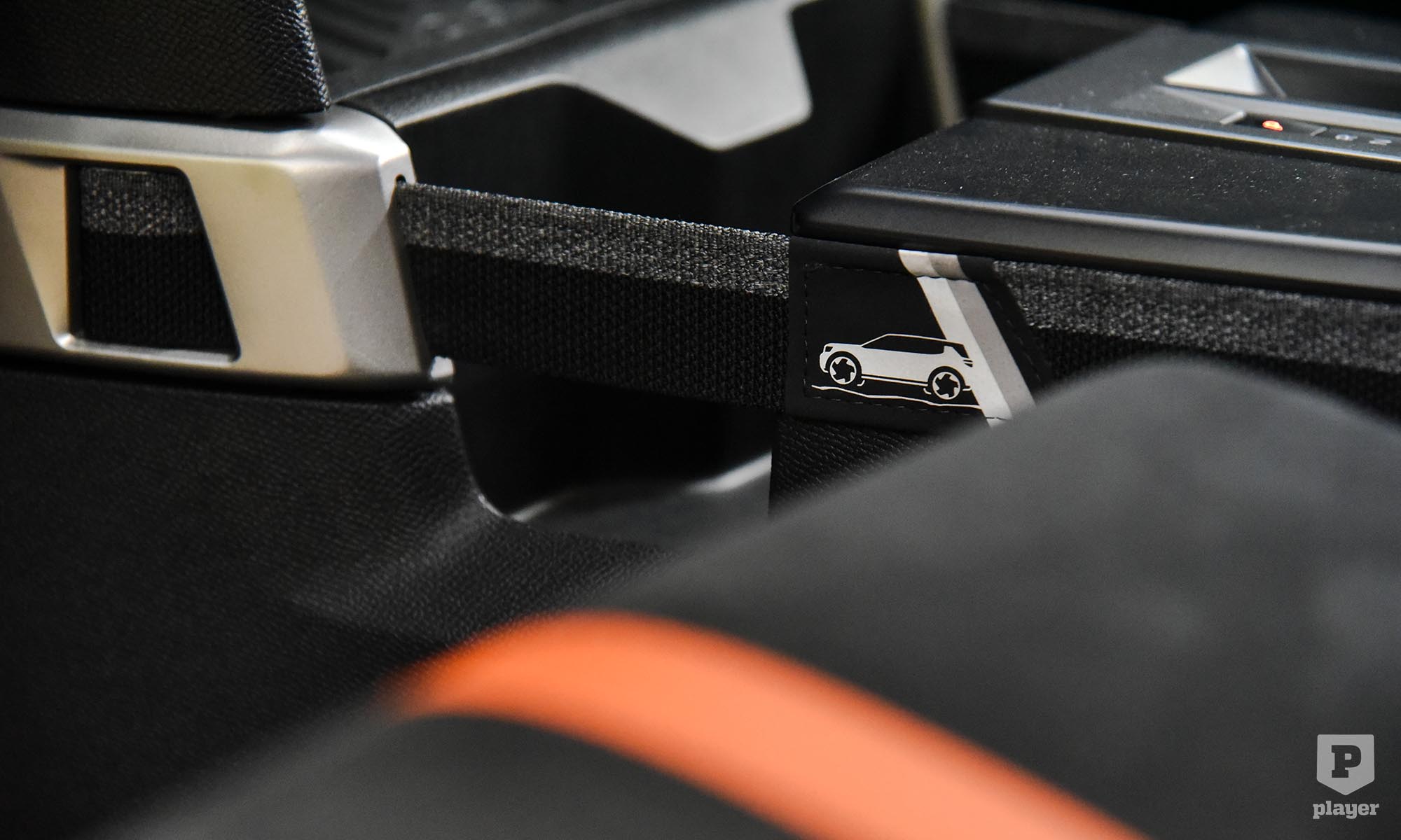 főleg az alapmodellhez adott, fehérre fényezett lemezfelnivel. A Gravel azonban egy teljesen új, dögös külsőt kapott, matt fekete tetővel és motorháztetővel, és ezzel a homokkőszínű matt fóliával, ami valósággal vonzza a tekinteted. Az új Opeleken gyakran rejtve marad a márkajelzés, hiszen a fekete hűtőmaszkra fekete embléma kerül, de nem ezen a Fronterán, amiről szinte leugranak a rikító narancssárga részletek.