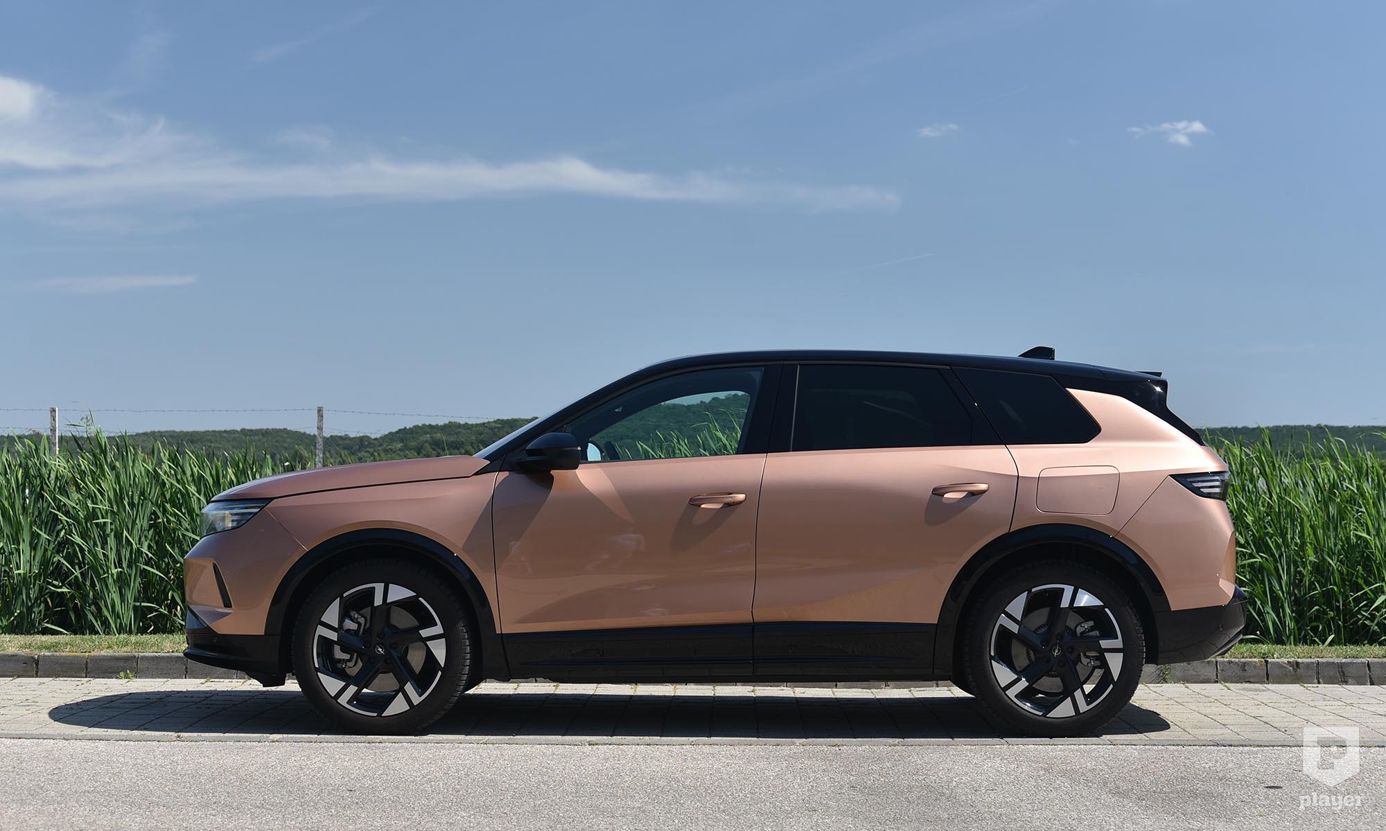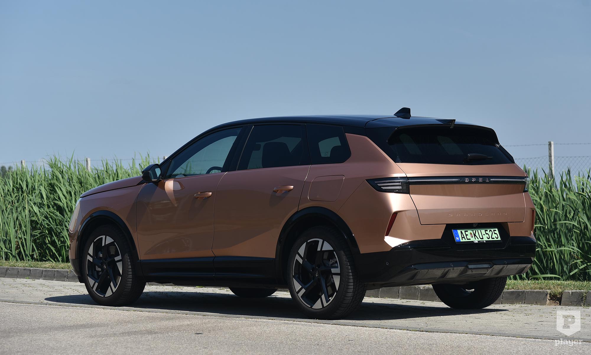 A 2020-as évek közepén járunk, vagyis a Grandland is szabadidő-autó, mintha korunk átlagembere a rengeteg szabadidejét állandó helyváltoztatással ütné el, de több figyelmet érdemel – és többet is von magára –, mint az elődje. Ennek a tesztautó esetében elsősorban a fényezés az oka, amit nem rosegoldnak, hanem impakt réznek hívnak, és a típushoz ez az alapáras szín, még a legolcsóbb szürke is 150 ezer forinttal többe kerül. A Stellantis dicséretes célja, hogy színesebb legyen az utcakép – ugyanezzel a módszerrel élnek más márkáiknál is, az Alfa Tonale alapszíne piros és a fekete, a Peugeot 308-asé a kék stb. –, a városban körülnézve látszik, hogy vagy nem működik kellően jól a módszer, vagy nem elég nagy a piaci részesedésük.