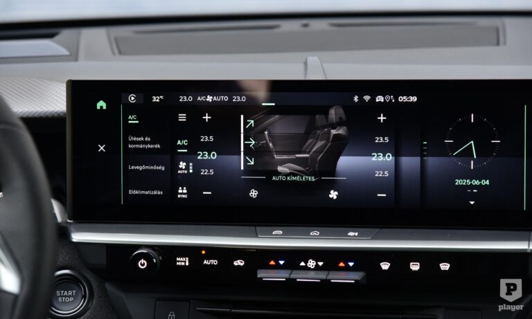 Lényegesen felhasználóbarátabb, hogy az egyszerűsítés ellenére is megmaradt a külön klímavezérlő-panel és tekerővel lehet állítani a hangerőt, és bár a kormány mögötti kijelző is jól leolvasható, a 680 ezer forintos GS technológiai csomaghoz egy hatalmas head-up display is jár.