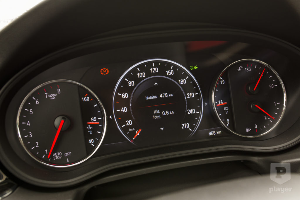 Ha megemlítjük, hogy az Insignia alapfelszereltsége is gazdag – például aktív sávtartó, Opel Eye kamerarendszer, tempomat van benne persze a légzsákokon, légkondin is minden egyéb, a kategóriában kötelező cuccon felül –, a majdnem 700 ezerrel drágább Innovation szinthez pedig már kétzónás automata klíma, balesetnél automatikusan riasztó OnStar rendszer, automata távfény, esőérzékelő, fényre sötétedő belső visszapillantó is jár. Persze a bő 11 millió forintos tesztautó a rendesen a szélvédőre vetítő head-up displaytől a már említett, de nem említett árú ortopéd ülésekre húzott fűthető-hűthető bőrkárpitig (1,1 millió forint) mindent megkapott, ami általában nevetséges konfiguráció egy gyengécske alapmotorhoz, nála viszont nincs ilyen érzésünk.
