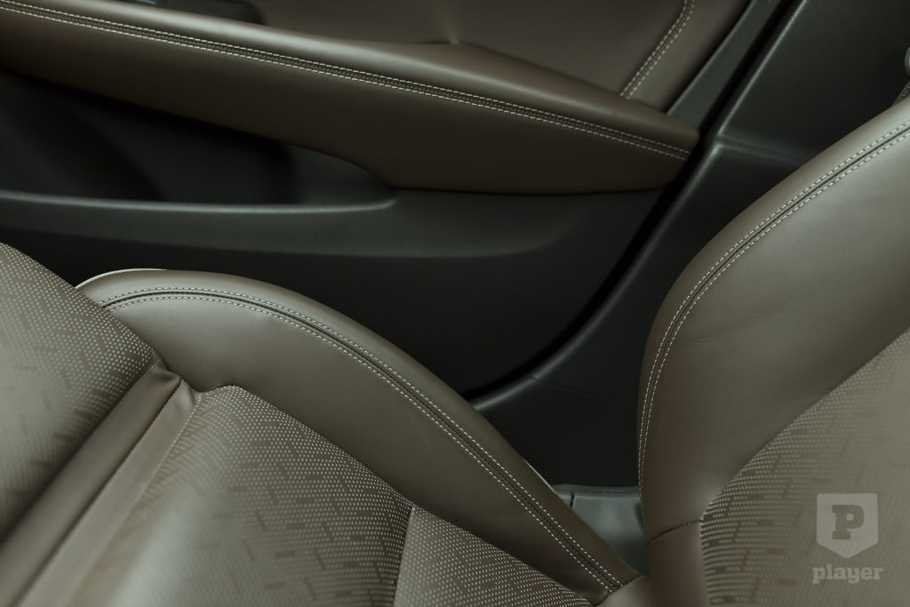 A szörnyű időjárási viszonyok között készített fotókon talán nem látszik annyira, hogy a tesztautó nem területiképviselő-, hanem gyöngyházfehér fényezést kapott, ami kifejezetten jól nézett ki, az viszont érzékelhető, hogy a Brownstone barna bőrbelső tökéletes hozzá. Mivel a műszerfal formája is friss, igazán kellemes a beltér hangulata, és bár az infotainment rendszer képernyője miatt nem kell gombrengeteg, a hifi hangerejét és a légkondi főbb funkcióit külön gombokkal vezérelhetjük, ami sajnos nem alapértelmezés az autóiparban.