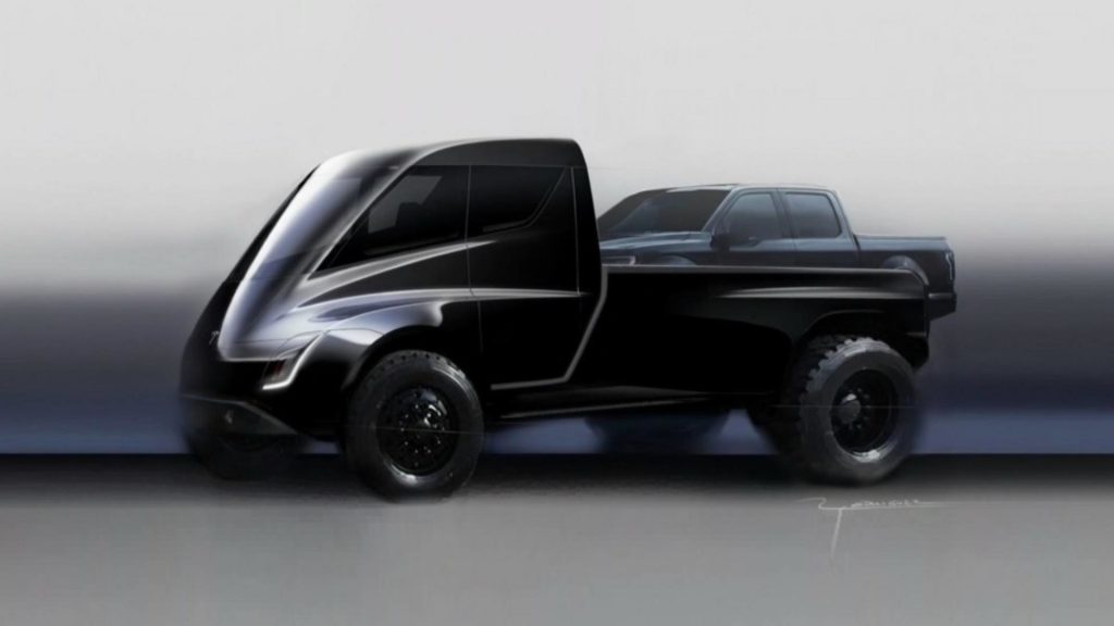 Elon Musk sok meglepetéssel készült az év végére. Az elektromos hajtású kamion bemutatóján még egy vadonatúj modellt, a Roadster utódját is bemutatta, de ezen kívül is szolgált egy érdekességgel. A prezentáció egyik képén szerepelt egy harmadik újdonság: egy óriási pick-up. Olyan hatalmas, hogy a platójára még egy pick-up, az önmagában sem kicsi Ford F-150 is felfért.