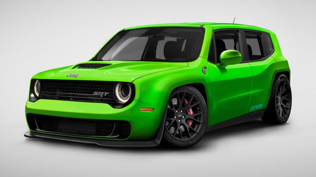 Az eredeti formájú Jeep Renegade egy barátságos teremtés, de nem akkor, ha egy Dodge Challenger Hellcat génjeit oltják bele. Az 1,4 literes turbós négyhengeres ugyanis egy 6,2 literes, kompresszoros V8-asnak adja át a helyét, a hétszáz lóerő pedig csodákat művelhet a kisterepjáróval.