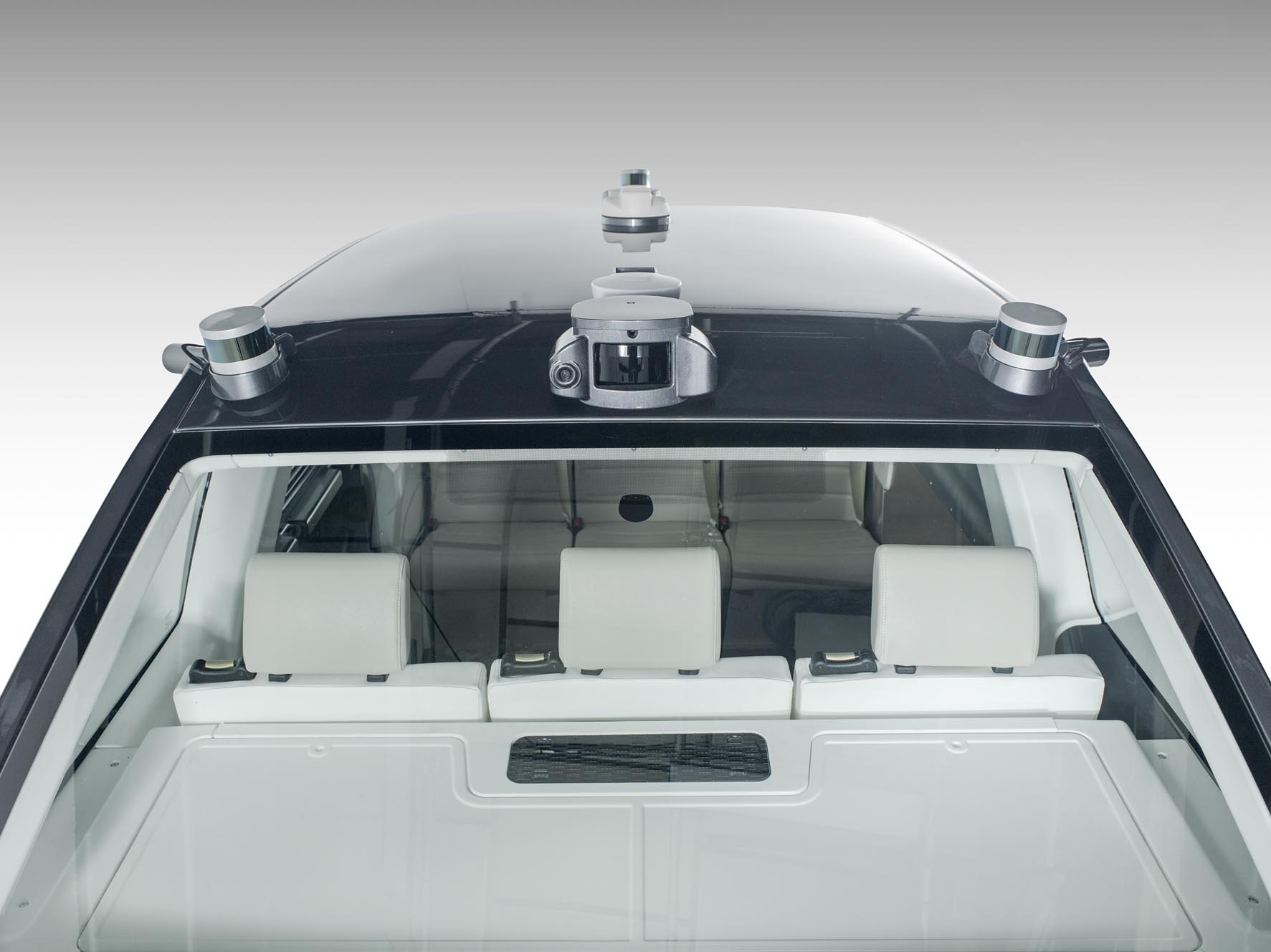 A legérdekesebb az önvezető rendszer, ezen a téren pedig az Autonom Cab prototípusát rendesen ellátták érzékelőkkel. Az összesen 10 darab lidar szenzor közül három 360 fokos, de ott van még négy radar, hat kamera és két GPS vevő is. A tervek szerint okostelefonnal lehet majd taxit rendelni, és a cím megadása is ezzel történik.