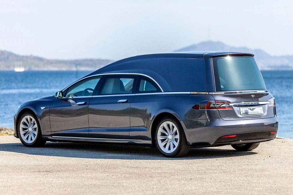 A világon állítólag csak négy darab Tesla halottaskocsi létezik, és abból hármat Jan Erik Naley készített, aki a képen látható példányt is jegyzi. Az alapokat egy Model S 75D adta, a megrendelés pedig egy norvégiai cégtől érkezett, ahol különleges autót kerestek a szertartáshoz.