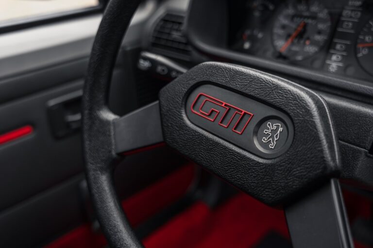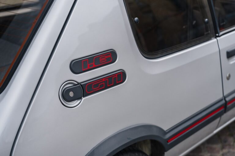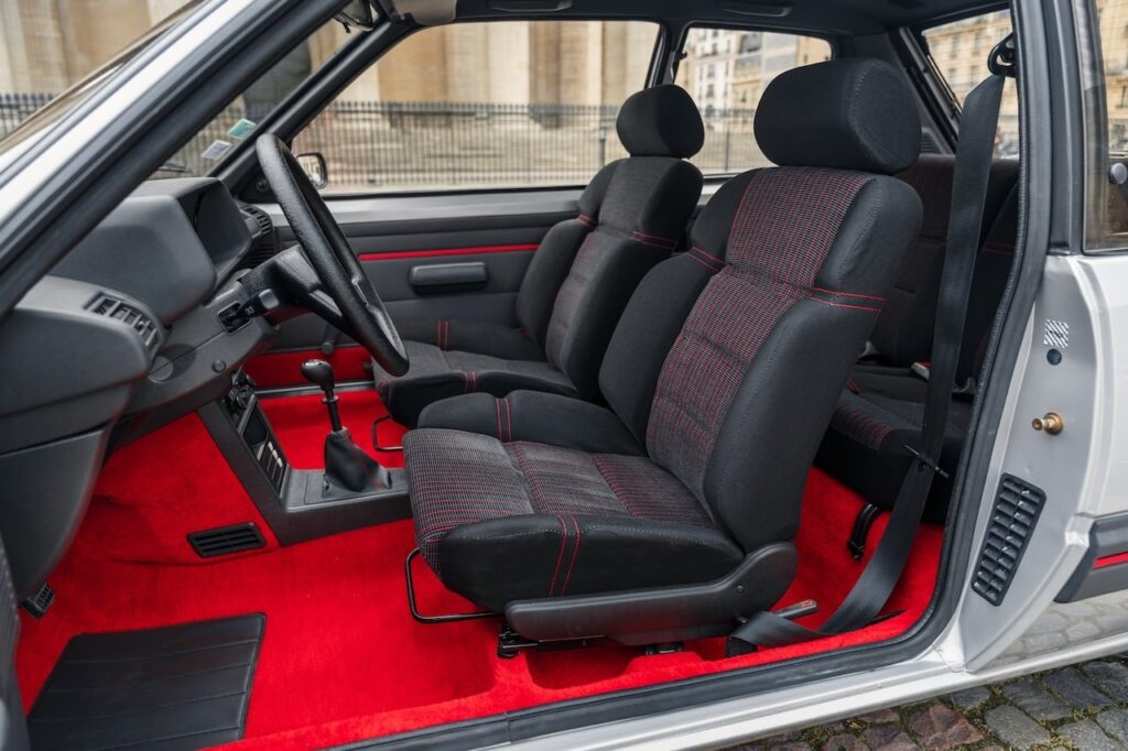 A Peugeot nem bánt szűkmarkúan a módosításokkal, műanyag sárvédőtoldatokkal, egyedi lökhárítókkal és 14 colos Speedline felnikkel szerelte fel a 205 GTi-t, aminek a belsejében a piros szőnyegkárpit adja meg a hangulatot.