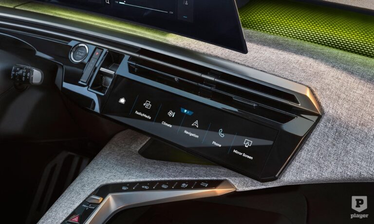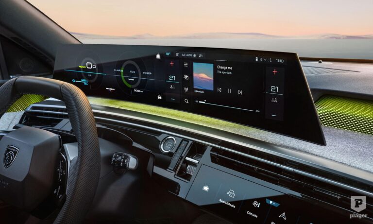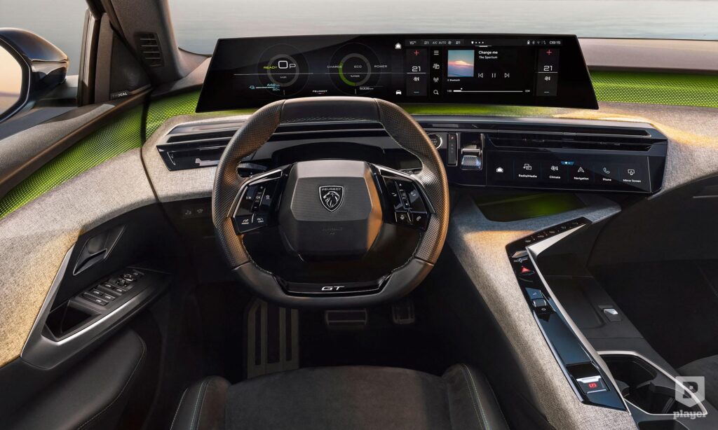a kis kormánykerék, az ívelt kijelző és az alatta lévő gyorsgombok is az új 3008-ból kerültek át.
