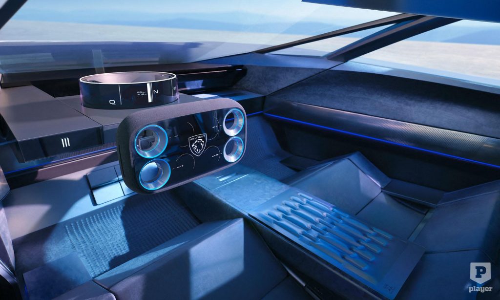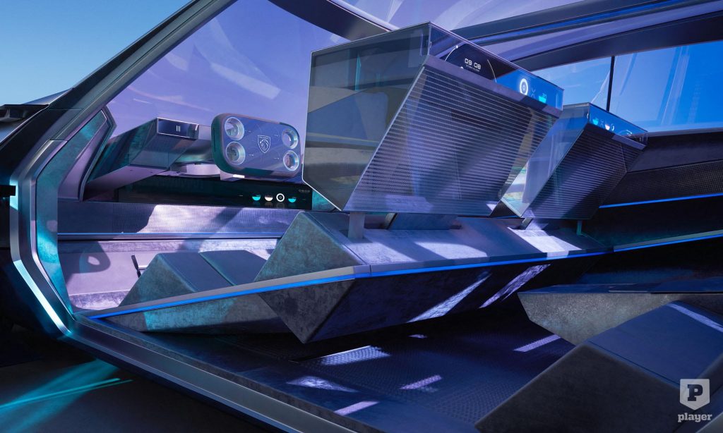 A belső tér a Peugeot i-Cockpit berendezését gondolja tovább, furcsán szögletes Hypersquare kormánykerékkel,