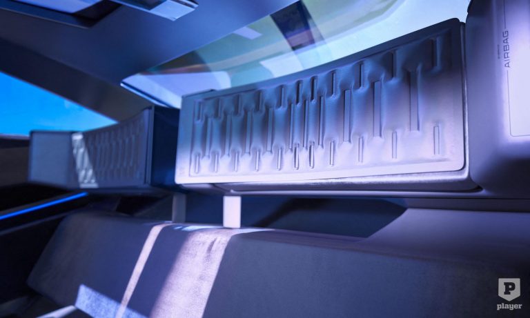 szinte az összes kezelőszervet ide csoportosították egy érintőkijelzőre. A magasra tett műszeregység, a Halo Cluster önvezető módban a műszerfalba bújik, akárcsak a kormánykerék, és egy nagyobb képernyő veszi át a helyét. Az újrahasznosított anyagokból kárpitozott ülések nemcsak látványosak, de állítólag mesésen kényelmesek is.