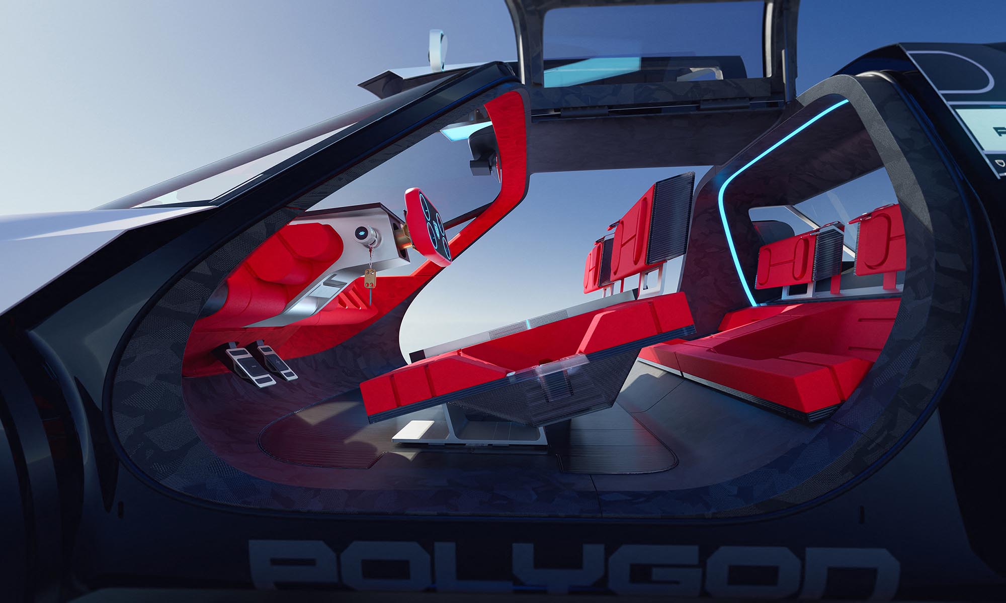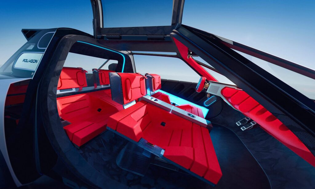 A Polygon megmutatja, hogy milyen lesz a Peugeot következő generációs i-Cockpit utastere. A műszercsoport még magasabbra költözik, hiszen a teljes szélvédő egy óriási head-up displayként funkcionál, ezért feleslegessé válik a hagyományos műszeregység és a központi infotainment kijelző is. Cserébe még tágasabb és letisztultabb lehet a belső tér.