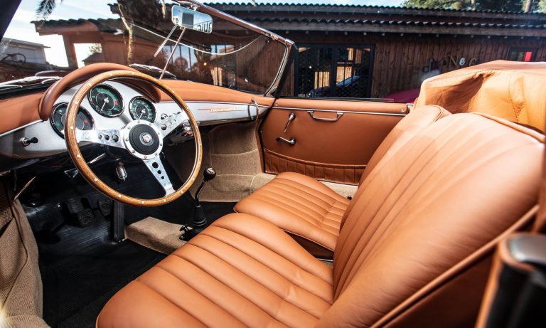 Tökéletes példány a vitorlások között pózoló ezüst 356 kabrió, mely átfogó restauráláson esett át, így talán még újkori állapotánál is jobb autó lett belőle. Elegáns bézs bőrrel kárpitozott beltere és hozzá passzoló teteje nagyszerű kombináció.