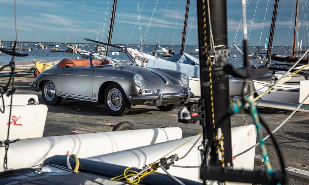Állhatnának a vitorlások között tornyosuló Bentaygák és fényűző Maybach-ok, de még rikító piros Ferrarik közül is kitűnne ez az elegáns, ezüst színű veterán Porsche, ami tökéletes kiegészítője egy remek hétvégének.