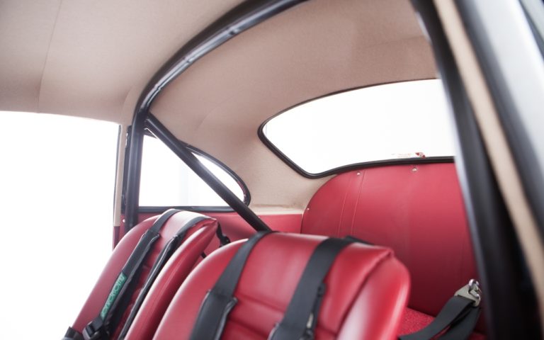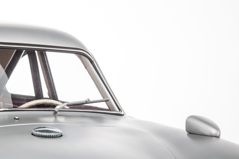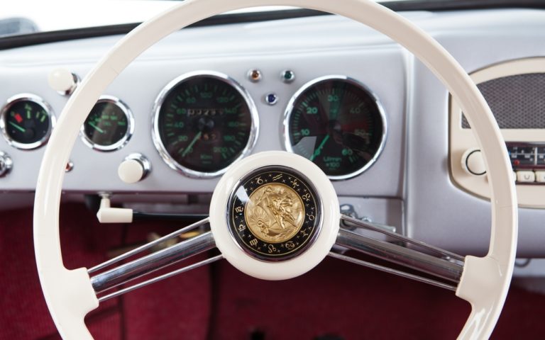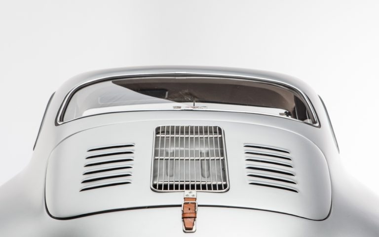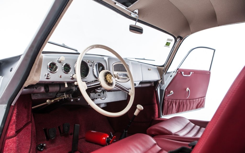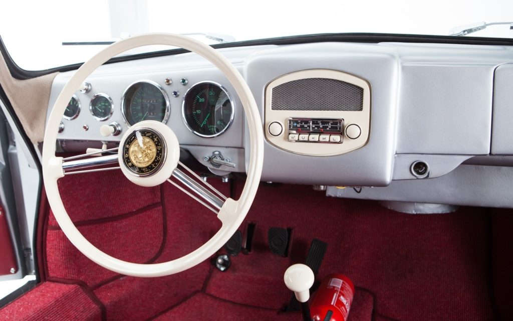 1956-ban készült, új korában Portugáliába került, most pedig apró részletek árulják el, hogy nem egy eredeti állapotba hozott példányról van szó: ilyenek a bőrszíjjal rögzített fedelek és az 550 Spyder stílusában készült visszapillantó tükör is.