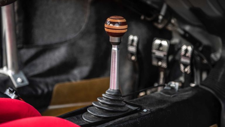 A közúti versenyautót a 911-ből származó ötfokozatú kézi váltóval és kagylóülésekkel szerelték, és képzelheted, hogyan megy, ha menetkészen is csak 890 kilogrammot nyom.