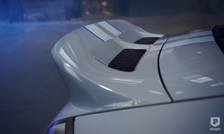 arról származik a régi idők versenyautóit idéző dupla buboréktető, a halványkék színű fényezés a hosszában futó versenycsíkokkal, valamint a hetvenes évekbeli 911 Carrera RS-t idéző kacsafarok-légterelő. A 18 colos kerekeket az ikonikus Fuchs felnik mintájára alkották újra, a belső térben pepita kárpit idézi meg a kilencvenes éveket.
