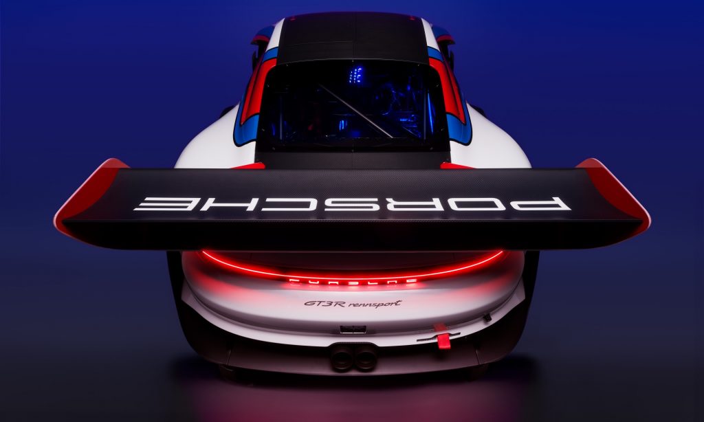 Csak néhány elemet tartottak meg a GT3 R-ből, így az autó nagyrészt új konstrukció, melynek egyik újdonsága az oldalsó légcsatorna. Ez az utcai Porsche 911 GT3 RS-en is látványos, de a rennsporton erre is rátettek egy lapáttal. Az autó hátulján piros fénycsík világít teljes szélességében, alatta pedig szinte teljesen nyitott a diffúzor feletti rész, így látható a gépészet.