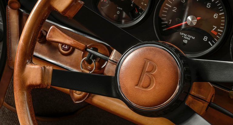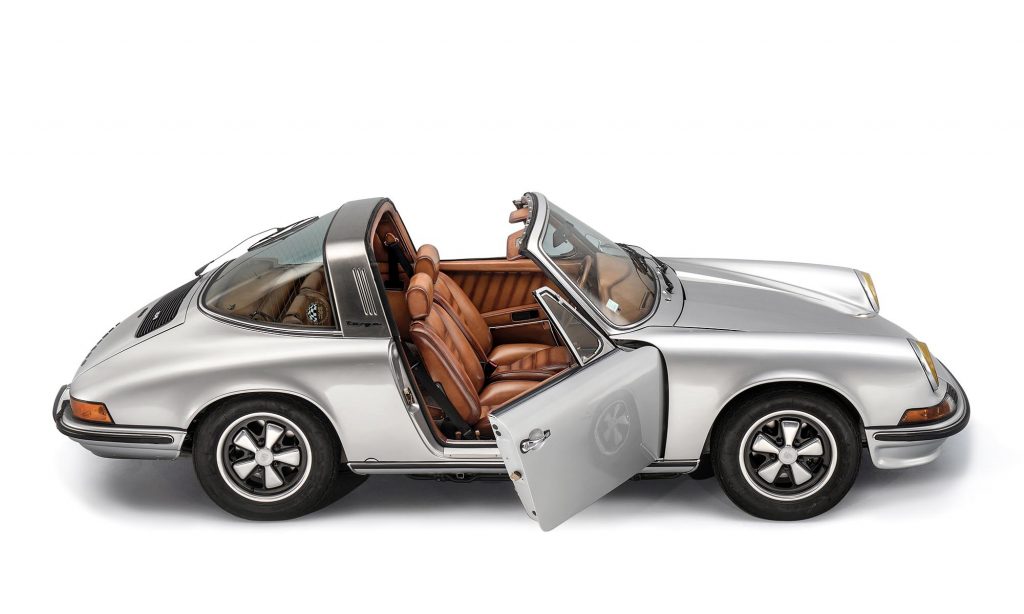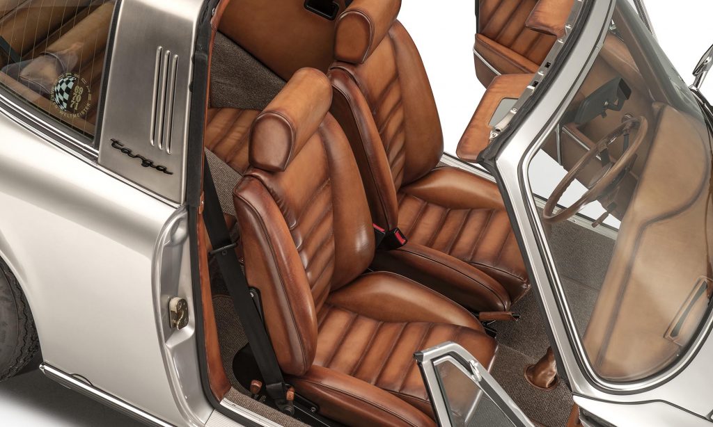 1973-ban gyártották ezt a 911 S Targát, a veterán Porschék közül az egyik legkívánatosabbat, amit vezetni sem utolsó. 2,4 literes, hathengeres, léghűtéses motorja 190 lóerős, a váltója ötfokozatú, amivel 7,8 másodpercen belül gyorsult százra és a végsebessége elérte a 228 km/órát. Most mégsem a tökéletes állapotban lévő veterán autó az érdekes, hanem a kárpitozása, amit a Berluti készített.