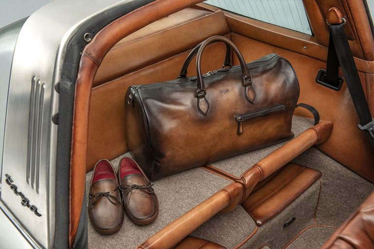 csak éppen a stílusa tökéletesen illik ehhez a veterán Porschéhez. Kihagyott lehetőség lenne, ha nem járna egy utazótáska és egy pár vezetésre szabott cipő is ajándékba a Berlutitól a 911-hez, ami a Sotheby’s aukciójára került.