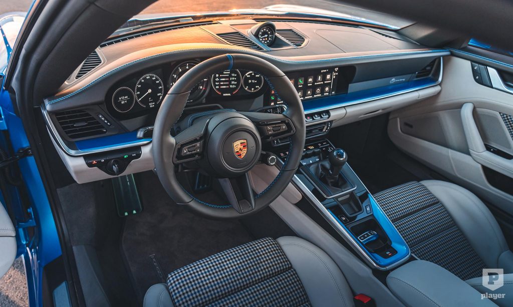 és mivel Sally imádja az országutat szelni, ezért a hétfokozatú manuális sebességváltós 911 Carrera GTS mellett döntöttek. A vevők egyedi kívánságait valóra váltó Porsche Exclusive Manufaktur egy éppen olyan színű kék fényezést kevert ki hozzá, mint a filmben.