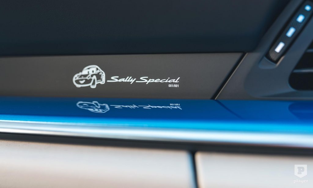 Sally a filmben az ikonikus Turbo felniket viselte, ennek modern változatát is megalkották a Porschénél, az utasteret pedig kockás szövetkárpittal és kék cérnával varrt szürke bőrrel vonták be. Sok részlete utal a filmre, például a bőrbe nyomott Verdák-embléma, de