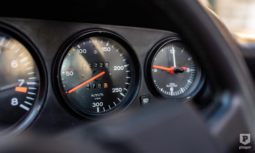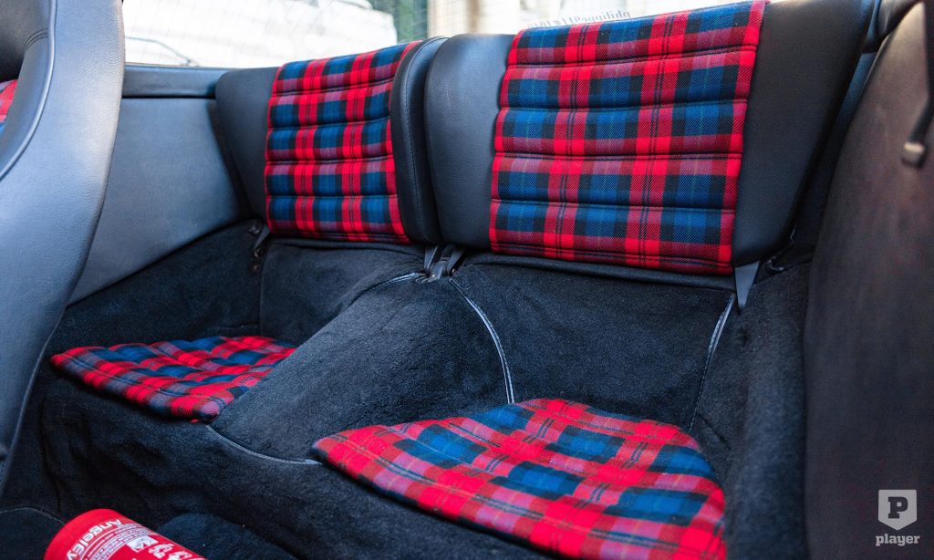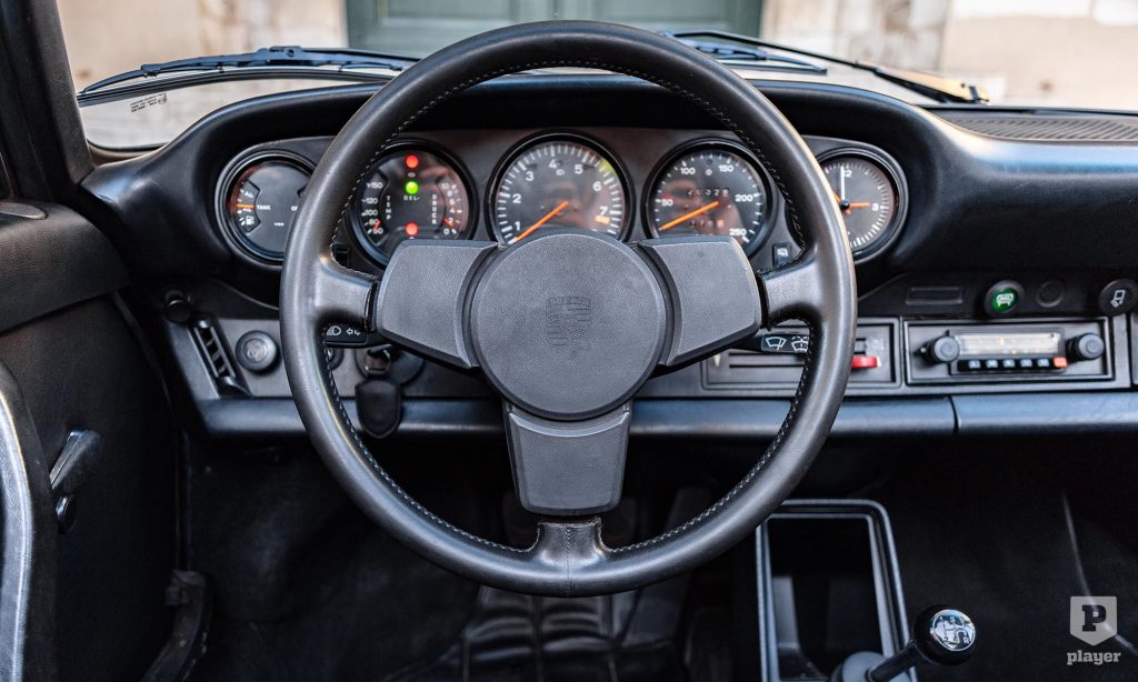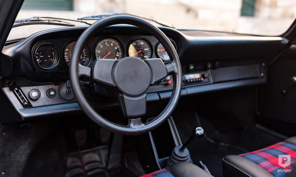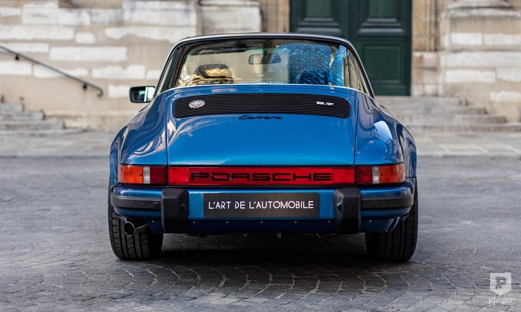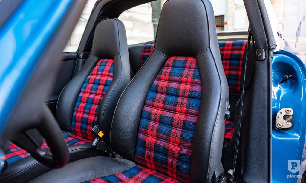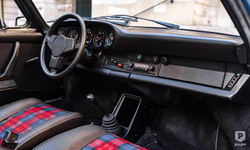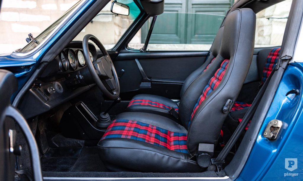 A képeken látható 911 Targa felújításon esett át, Gemini kék fényezése és a korszakot tökéletesen megidéző kockás kárpitja is eredeti pompájában ragyog. Azóta csak 20 ezer kilométert tettek meg vele, és ez is lehet az oka, hogy a L’Art de L’Automobile kínálatában