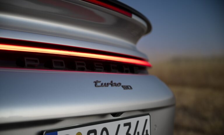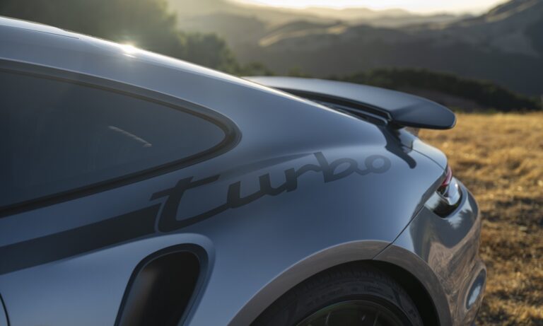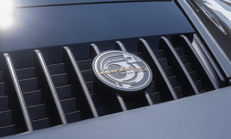 Mind közül a legaranyosabb részlet a gépháztető feletti légbeömlő plakettje, melyen az 1974 és 2024 felirat olvasható egy dombornyomott turbófeltöltőn. A gépházfedél alatt láthatatlan a motor, de a mélységben ott van a 3,7 literes, hathengeres bokszer és a két változó geometriás turbófeltöltő. Az ötvenedik évfordulós limitált széria a 911 Turbo S-ből készül, tehát 650 lóerős és 800 Nm nyomatéka van. hozzá nyolcfokozatú duplakuplungos automata váltó csatlakozik és összkerékhajtás.