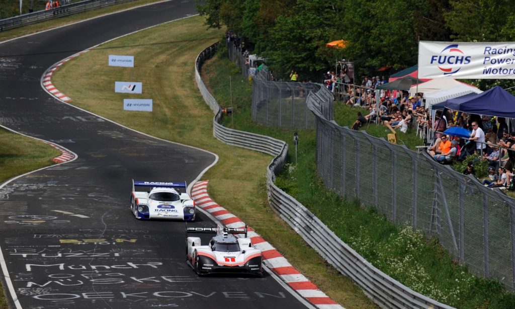 Ezúttal nem a körrekord megdöntése volt a cél, inkább a látvány kedvéért ment együtt a 956 C és a 919 Hybrid. Az utóbbit pedig a széria címvédő bajnoka, Timo Bernhard vezette, aki szintén nyert már Le Mans-i 24 órást, és öt nürburgringi győzelmével rekordernek számít. A 919 Hybrid, amivel nemrég megdöntötték a Lewis Hamilton F1-ese által tartott körrekordot Spában, idén még más legendás versenypályákon is feltűnik majd.
