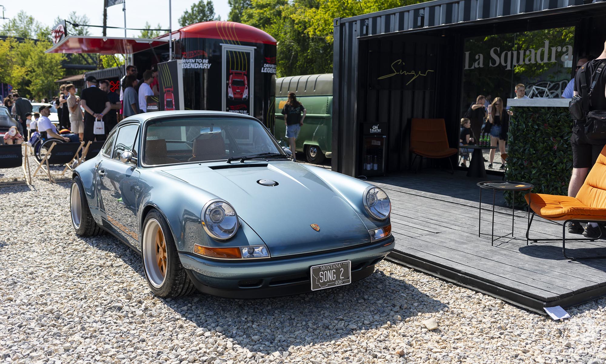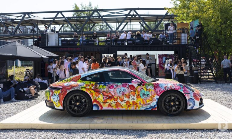 A hangulat családias, a beszélgetések őszinték, a háttérben zene szólt, miközben street food standok és Porsche-ajándéktárgyakat árusító pultok között barangolhattunk. Művészeti eseménynek is tanúi lehettünk, Gioele Corradengo az első napon kézzel festett le egy Porsche 911 Carrerát, a következő napokon pedig pólókat szabott személyre élőben.