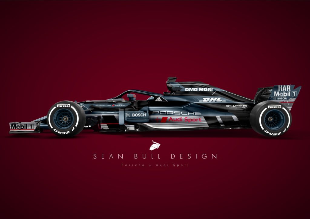 Kedvenc dizájnerünk, Sean Bull pedig elképzelte, milyen lenne a testvérmárkák szupercsapatának versenygépe, azaz egy Porsche-Audi az F1-ben. Egyszerű, de nagyszerű: