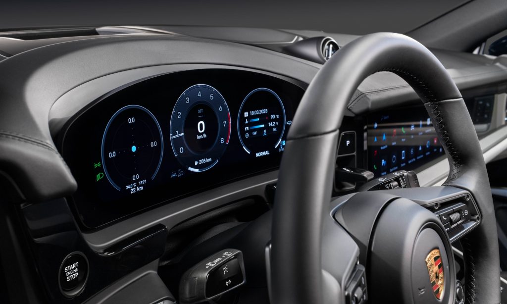 Műszerfalának teljes szélességében hirdeti a frissített Porsche Cayenne, hogy mekkora teret nyert a digitalizáció. A hagyományosan ötórás óracsoport helyett egy több nézetet kínáló, 12,6 colos átlójú, ívelt kialakítású digitális kijelző van a háromküllős kormány mögött, melynek nincs szüksége árnyékolóra, ezért a látvány modern és letisztult.