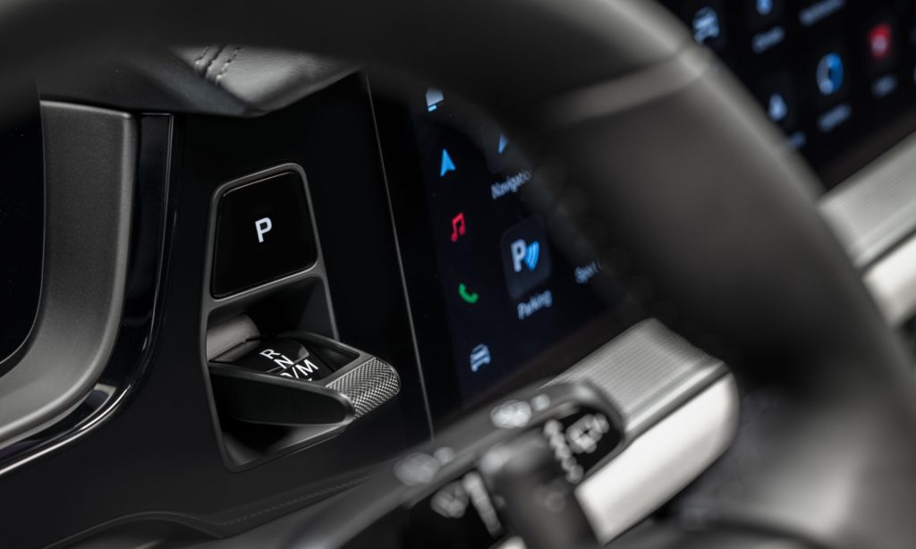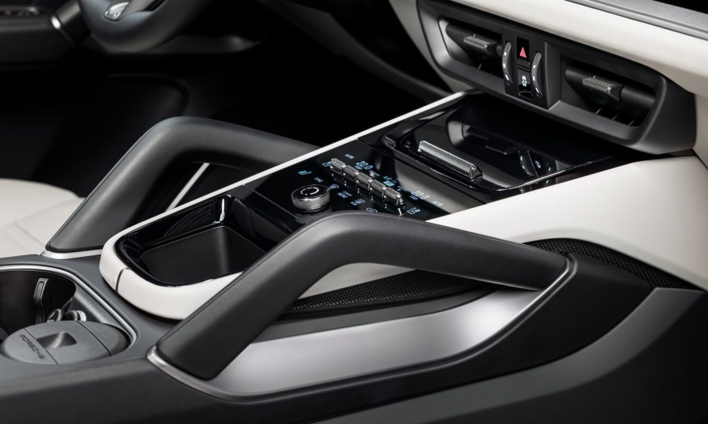 Már nem a könyöklő előtt található az automata váltó karja, hanem a műszeregység mellett kapott helyet a Taycanból ismerős irányválasztó kar. A kormány mögötti váltófülekkel azonban továbbra is elérhető a manuális mód azoknak, akik a hatalmas szabadidő-autóban is vágynak a sportos hangulatra.