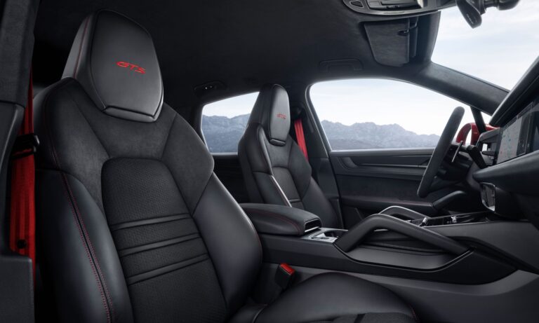 Mindenütt felbukkan a GTS logója a Cayenne utasterében, sportülései pedig határozottabb oldaltartásúak, az alapfelszereltség része a háromküllős GT sportkormány. A kárpitozás lehet teljes bőr is, de hagyományosan bőr és alcantarához hasonló Race-Tex-be varrják a belteret. Opciósan akár könnyítő csomag is elérhető lesz a Cayenne GTS-hez, ezzel 25 kilogrammot faragnak le az autó súlyából.