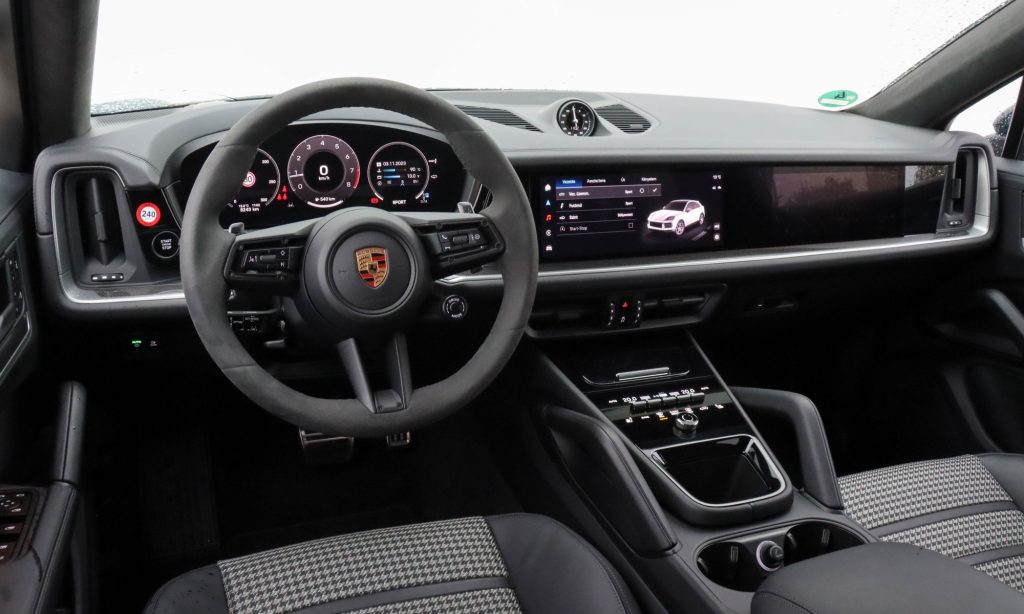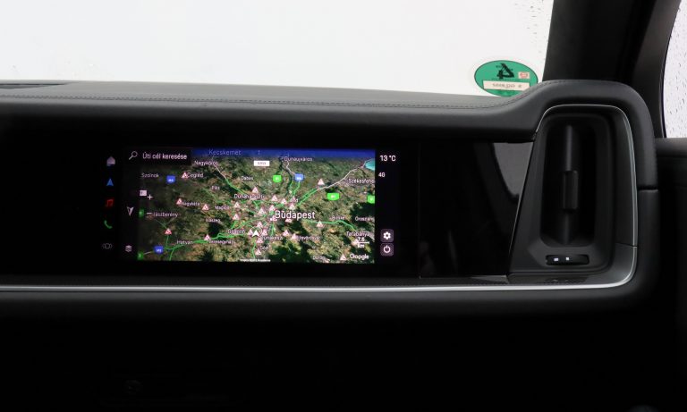 Komfort módban a Cayenne S Coupé tényleg csak egy rendíthetetlen bástya a forgalom sűrűjében, aminek belterében csend és harmónia van, meg indokolatlanul sok pixel a műszerfalon. Egészen a modellfrissítésig tökéletesen egyensúlyozott a Porsche a digitális élmény és az analóg minőségérzet között, de most szinte minden olyan kiveszett belőle, ami egy ízléstelen X6-os BMW fölé emelte. Minőségérzet akad itt töményen, de nincs benne váltókar, csak egy irányválasztó pöcök a műszerfalon, nincs előttem fordulatszámmérő, csak egy hajlított digitális kijelző, a szabályosan varrott bőrkötés és a klasszikus stopper pedig szinte fel sem tűnik a két szélesvásznú (12,3 és 10,9 colos) érintőképernyőtől. Mivel egy kicsit fáradt vagyok, kétségbeesetten keresem azt a fotocellás ajtót, amin távozhatok ebből az elektrotechnikai boltból, de aztán belegondoltam, hogy kint továbbra is esik, a vaskos fogású kormány pedig elhiteti velem, hogy Porschéban ülök.