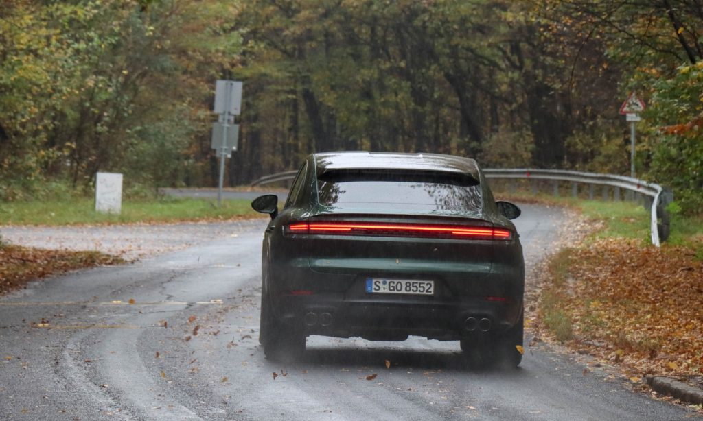 Ellenszenves tekintetek kísérnek az esernyők árnyékából ahogyan Budapesten araszolok a lámpától lámpáig dörmögő orgánumú autóval, ami miatt végtelenül kínosan érzem magam, mert a világért sem választanám a Cayenne-ből a Coupét, ha van Panamera GTS Sport Turismo, de zacskót mégse húzhatok a fejemre. Kívülről ez egy Porsche formájú Zeppelin, de bentről mindennél természetesebbnek tűnik 4,93 méteren elterülő 70 millió forinttal közlekedni. Abban a pillanatban hagyom magam mögött a keserűséget, ahogy elhagytam a várost és megjelennek az ősz gyönyörű színeibe öltözött fák az ablakon túl.