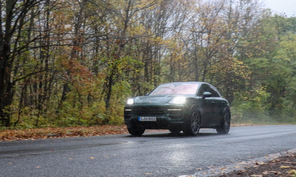 Sűrűn zuhog a novemberi eső, lehullott falevelek borítják az utat, ködbe vész a nyújtott kanyar vége, hevesen kalimpálnak az ablaktörlők a szélvédőn, de a Porsche Cayenne S Coupé elég nagy és erős hozzá, hogy ilyenkor is távol tartsa a fizikát. Tagadhatatlanul lenyűgöző, ahogy ez a 2,3 tonnás szabadidő-autó átvillan a kanyargós utakon. Mégsem mosolygok, mert már túl sok réteg van köztem és a vezetési élmény között.