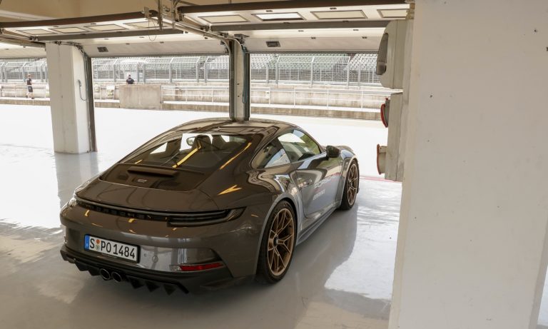Zsongott még a fejem az adrenalintól, amikor visszaültem a pasztell zöld színű Porsche 911 Carrera 4S kabrió kockás kárpitos üléseibe, ami szinte puha és nyugtató volt a GT modellek után. A rázókövek közül kedvem lett volna kiszabadulni vele egy lágyan kanyargó tengerparti útra, lenyitni a tetőt és élvezni a nyarat.