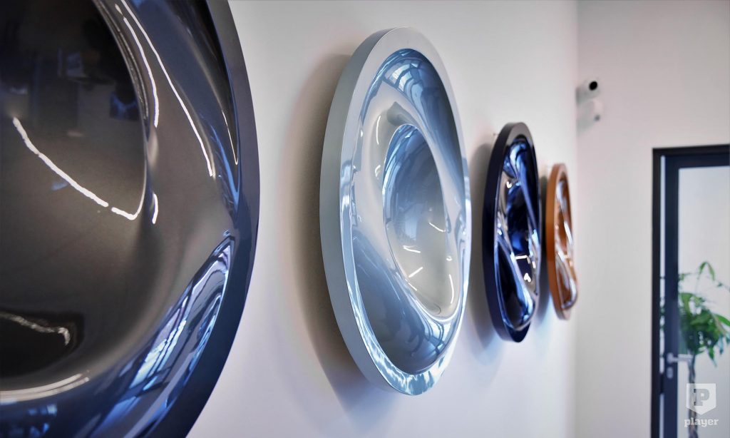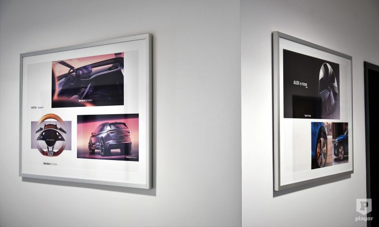 Az épület egyhangúságának megtöréséhez a művészetet hívták segítségül. A falakon látható kiállítás magyar autótervezők, a Playeren is bemutatott Dániel Tünde és Fogarasi-Benkő László munkáiból, a kurátornak felkért Kocsis Zsuzsa alkotása a holdat ábrázolja különféle autószínekre, például a Škoda főnixnarancsára vagy az Audi navarrablaujára festve,