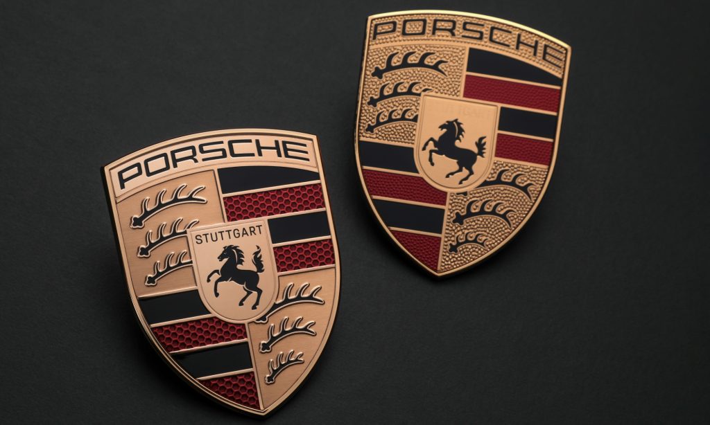 Veszélyes egy ennyire bevált és szeretett márka logóját lecserélni, de ebben az esetben nagyítóval kell keresni a változásokat. A Porsche aranyló címere csak részleteiben változott, bizonyos pontokon letisztultabb, más apróságokban kidolgozottabb lett. Az ágaskodó lovacska új rajzolatú, felette feketével szerepel Stuttgart neve. A Württemberg-Hohenzollern címerből származó agancsok mögötti terület sima felületű lett, a piros mezők viszont méhsejtmintásak.