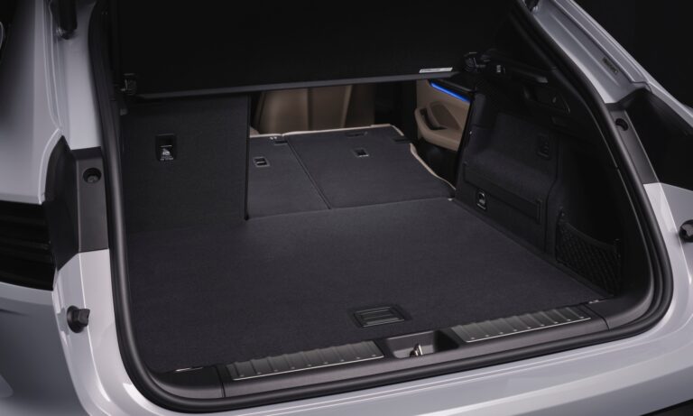 Hátul 540 literes csomagtartóba lehet pakolni a cuccokat, elöl pedig egy 84 literes rekeszben pont elférnek a töltőkábelek. Ezzel összesen 136 literrel több lehetőség van telepakolni a Porsche Macant, mint a korábbi benzinmotorosban volt.