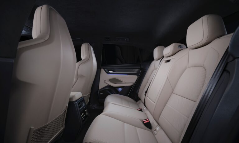Mindig érte kritika az első generációs Porsche Macant a szűk utastere miatt, de a hosszabb tengelytáv és a kompakt hajtás miatt az újban több hely jut az utasoknak és a csomagoknak is. Az akkumulátor miatt általában a villanyautók üléspozíciója magasabb lesz, de a Macannál az első ülések 28, a hátsók pedig 15 milliméterrel vannak alacsonyabban. Ahogy a vezető közelebb kerül az autó tömegközéppontjához, úgy érezhető egyre intenzívebben a gép mozgása, tehát a vezetési élmény és a kormányzás tényleg porschés lesz.
