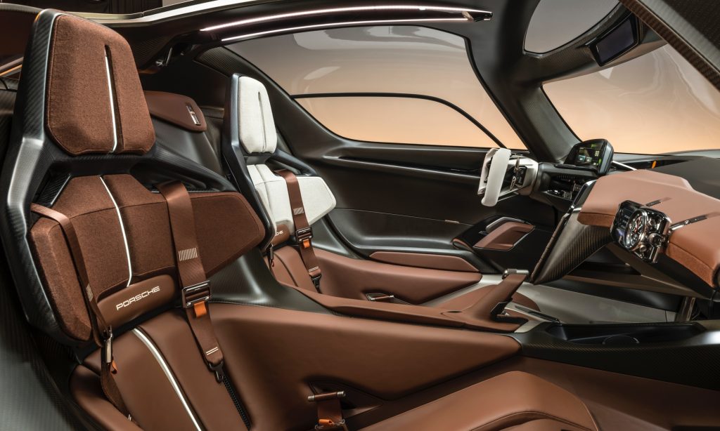 Függőleges fényszóróihoz a Porsche 906 és 908 versenyautóiból merítettek ihletet, az előre és felfelé nyíló ajtók pedig a 917-est idézik. A LED-es fényszórók ugyanakkor megtartották a menetfény jellegzetes, négyes egységét. A vezető és az utas egy karbonvázas üvegkupolában foglal helyet, a szélvédőn túl pedig pontosan úgy látja a vezető a domborodó sárvédőket, mint a pilóták a hosszútávú futamokon.
