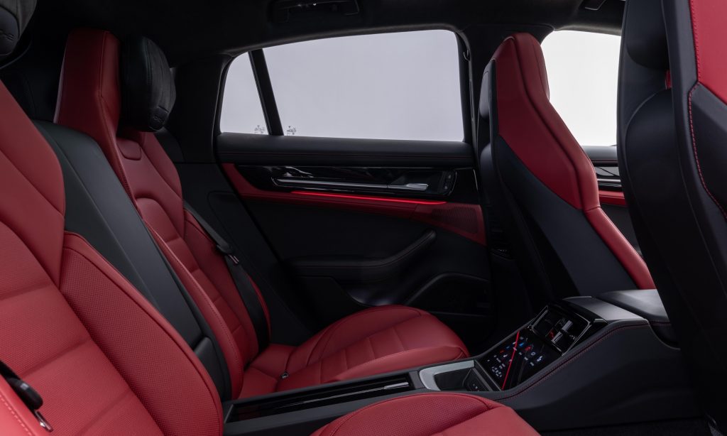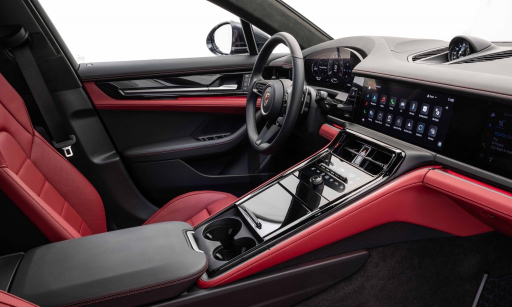 Eltűnik a hagyományos sebességváltó, az automata váltó karja inkább irányválasztóvá zsugorodott és a 12,6 hüvelykes digitális óracsoport mellé került. A középkonzolon néhány kapcsoló van csak, a funkciók nagyját műszerfali kijelzőkről lehet kezelni, melyek közül az utasét valóban csak az anyósülésről lehet látni. Ezzel a Panamera látványra sokat távolodott az eredeti sportos karaktertől, de a vezethetősége majd tuti bebizonyítja ennek az ellenkezőjét.