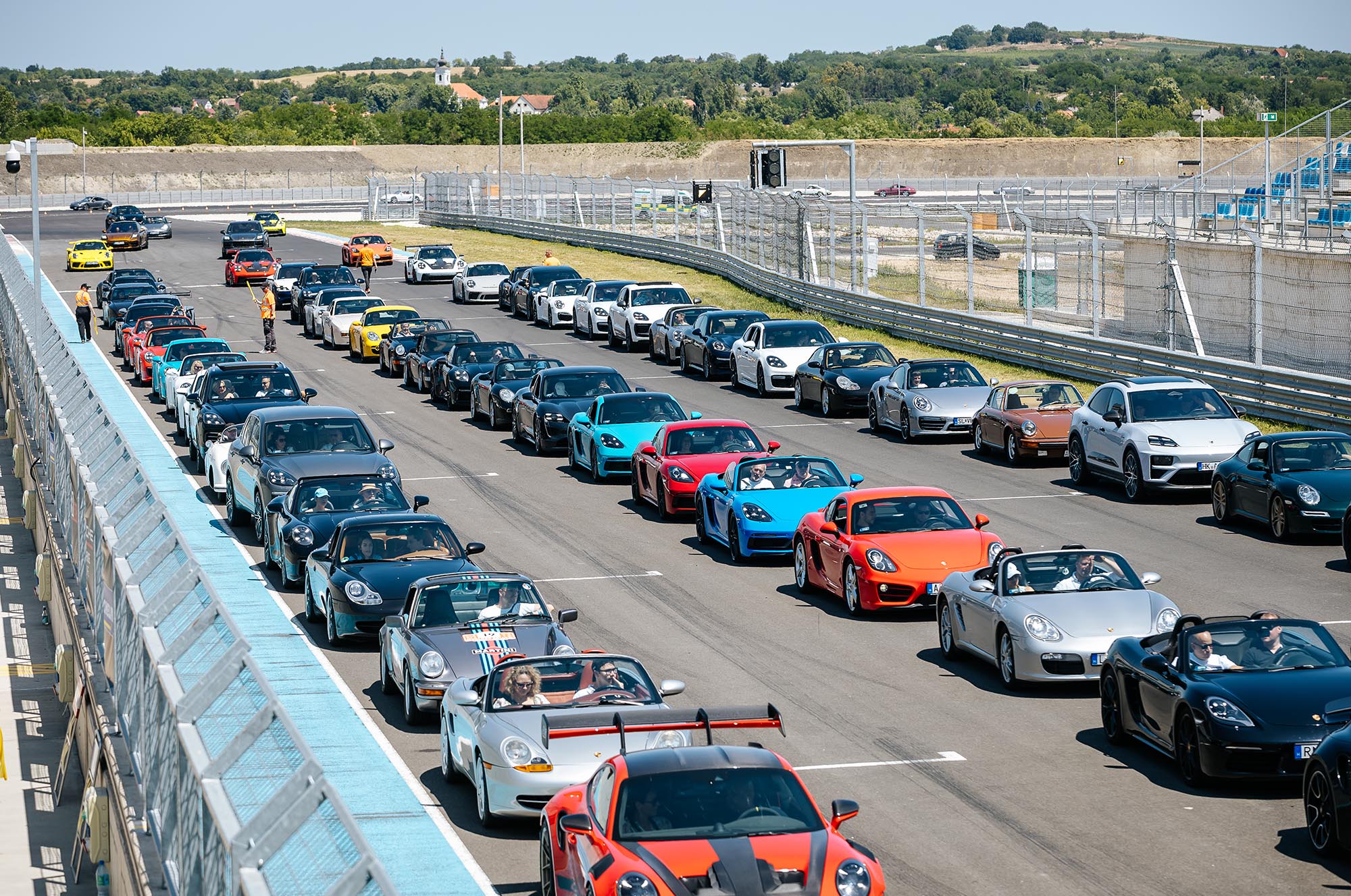 a nap fénypontja pedig az volt, amikor 250 Porsche hajtott fel egyszerre a pályára, közösen ünnepelve a márka múltját és jövőjét.