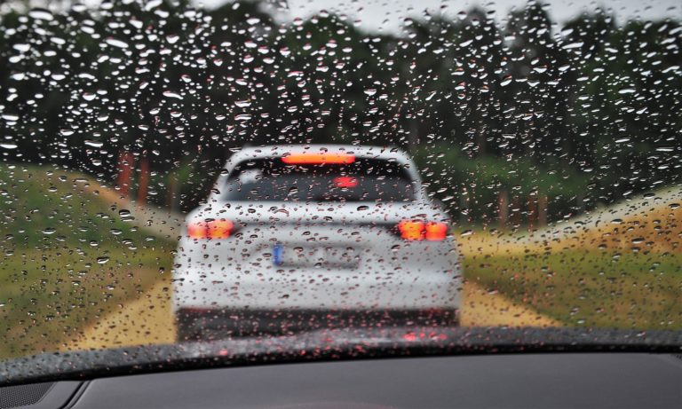 A vizes aszfalton nagyjából százig úgy rángatott a kormány, hogy két kézzel kellett markolni, de négykerekű jármű ilyen körülmények közt ennél gyorsabban aligha tudna menni.
