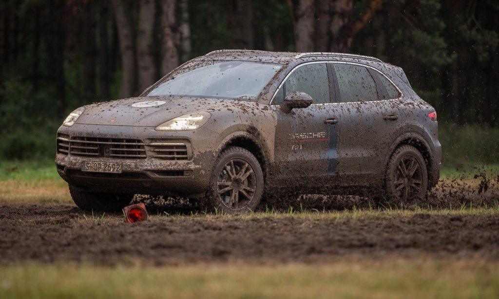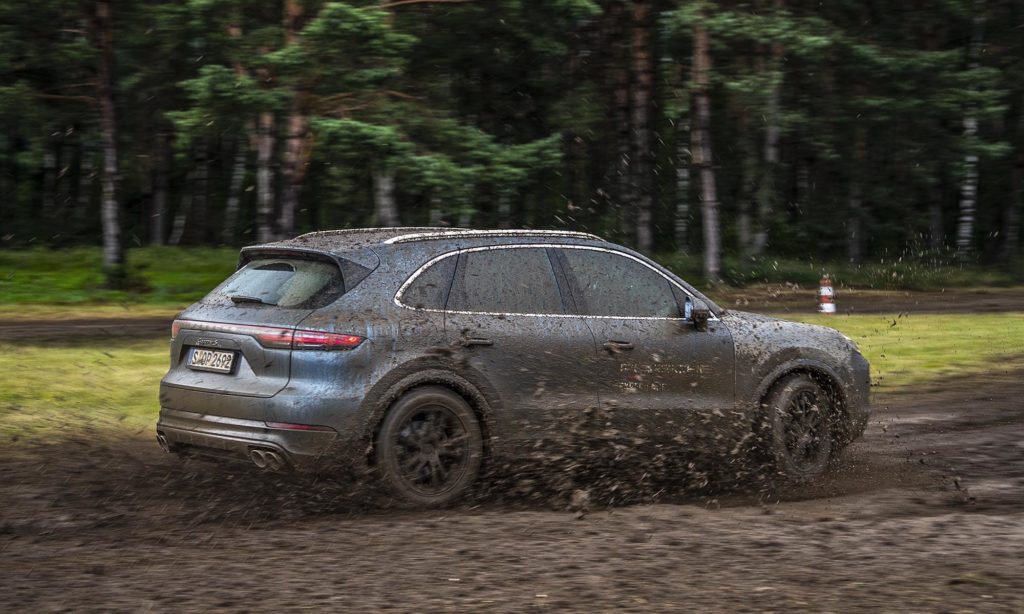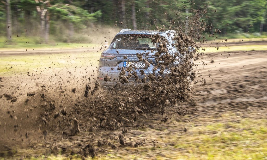 Még jobb móka volt a ralipálya, ami a dézsából ömlő eső miatt a tervezettnél is sárosabb volt. A Cayenne itt is simán tűrte a feladatot, miszerint a rajttól a célig ne vedd el a gázt, a pálya szélén állók meg majd vigyáznak magukra.