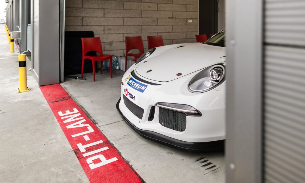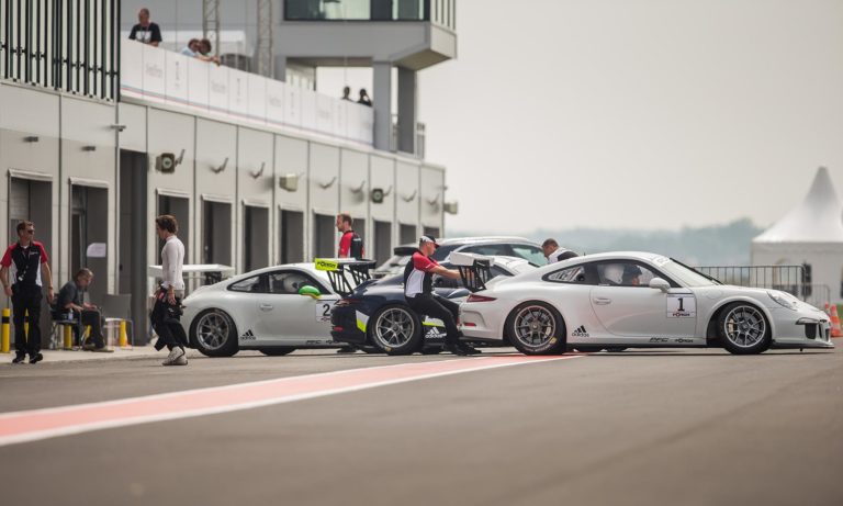 Sajnos az eső nem tágított, úgyhogy a versenypályára tervezett programok egy részéről le kellett mondanunk. Pedig 911 GT3 Cup versenyautókkal is készültek, amivel a gyári pilóták autóztatták azokat a szerencséseket, akik délelőtt még szárazon kerültek sorra a pályán. A rajtkockákkal, hosszú egyenesekkel és technikás kanyarokkal szabdalt pálya megér egy látogatást annak, akinek áll már legalább egy Porsche a garázsában.