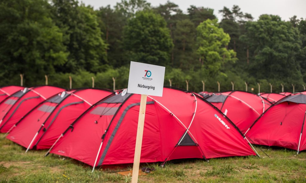ahol az egymás mellé parkolt kétszáz Porsche mellett ott sorakozott vagy ugyanennyi sátor is. A blokkokat versenypályákról nevezték el, és az enyém hol máshol, mint a Nürburgringen állt, puha matraccal, hálózsákkal, porschés törölközővel és papuccsal, szóval minden adott volt, hogy kipihenjük ezt az igazán hosszú napot.